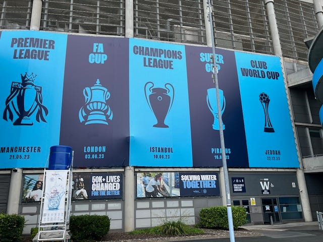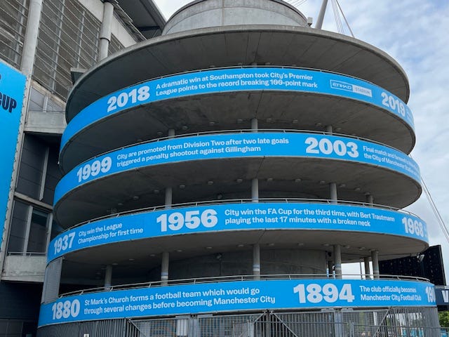 Was Syd a ManU fan? “F*** no. City boy, me, like my Pop and most of the rest of the city.” So I ran to the Etihad Campus along the canal to see for myself. It is one of the largest sports complexes in the world. The football stadium is just one of three stadia, albeit the largest. It is a colossus. My view of Manchester City has changed. Money may have bought their recent success, but there’s history there, too.